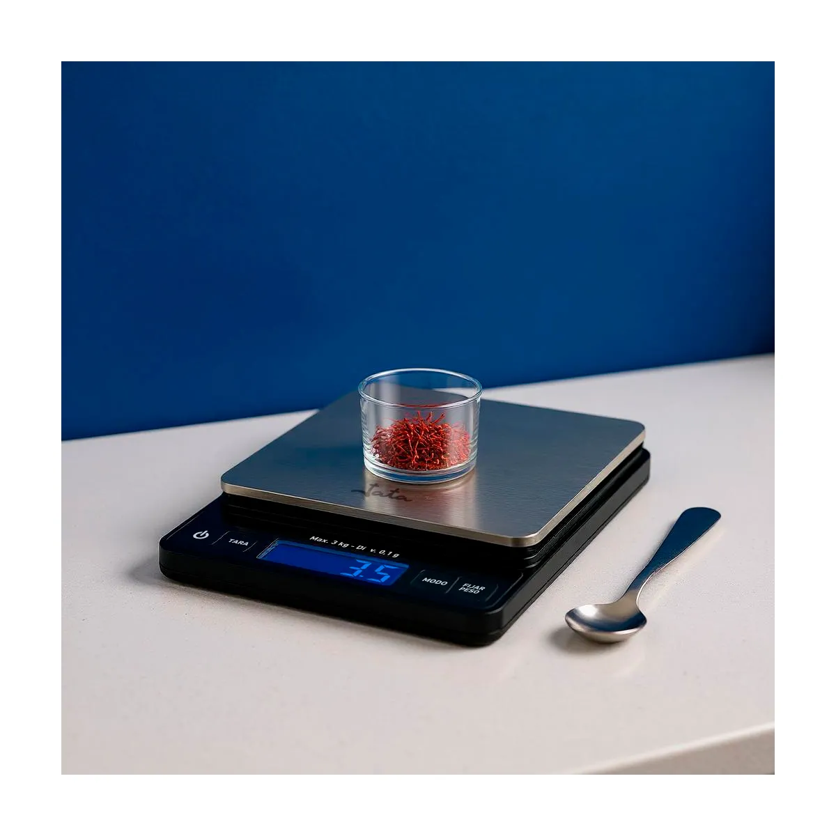 Capacidad 100 gAlta precisiónSuperficie de acero inoxidableSuperficie: 6,5 x 7 cm