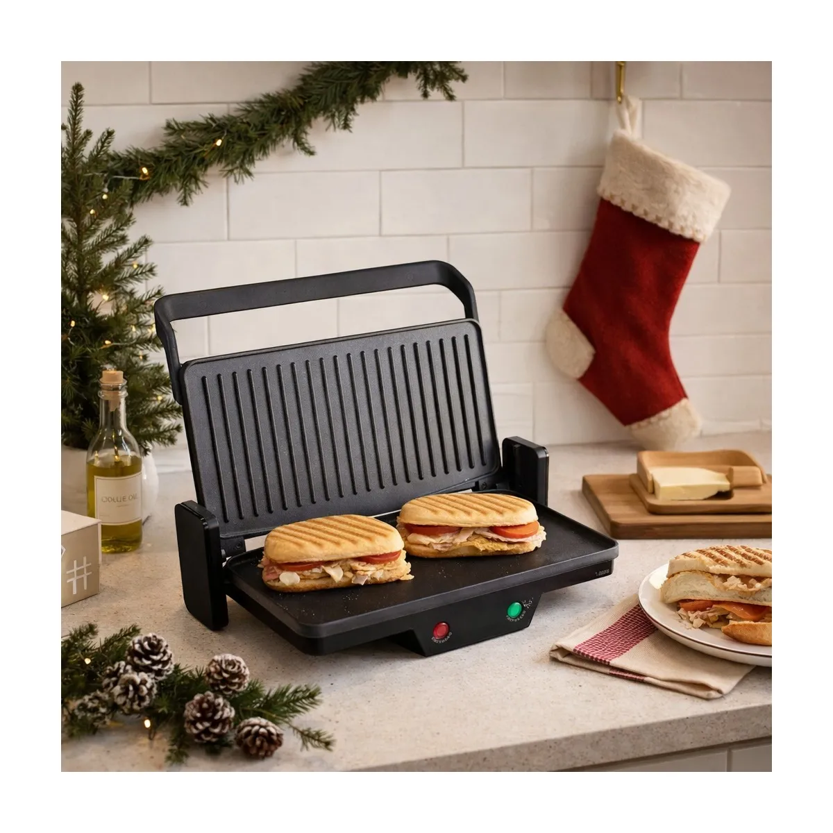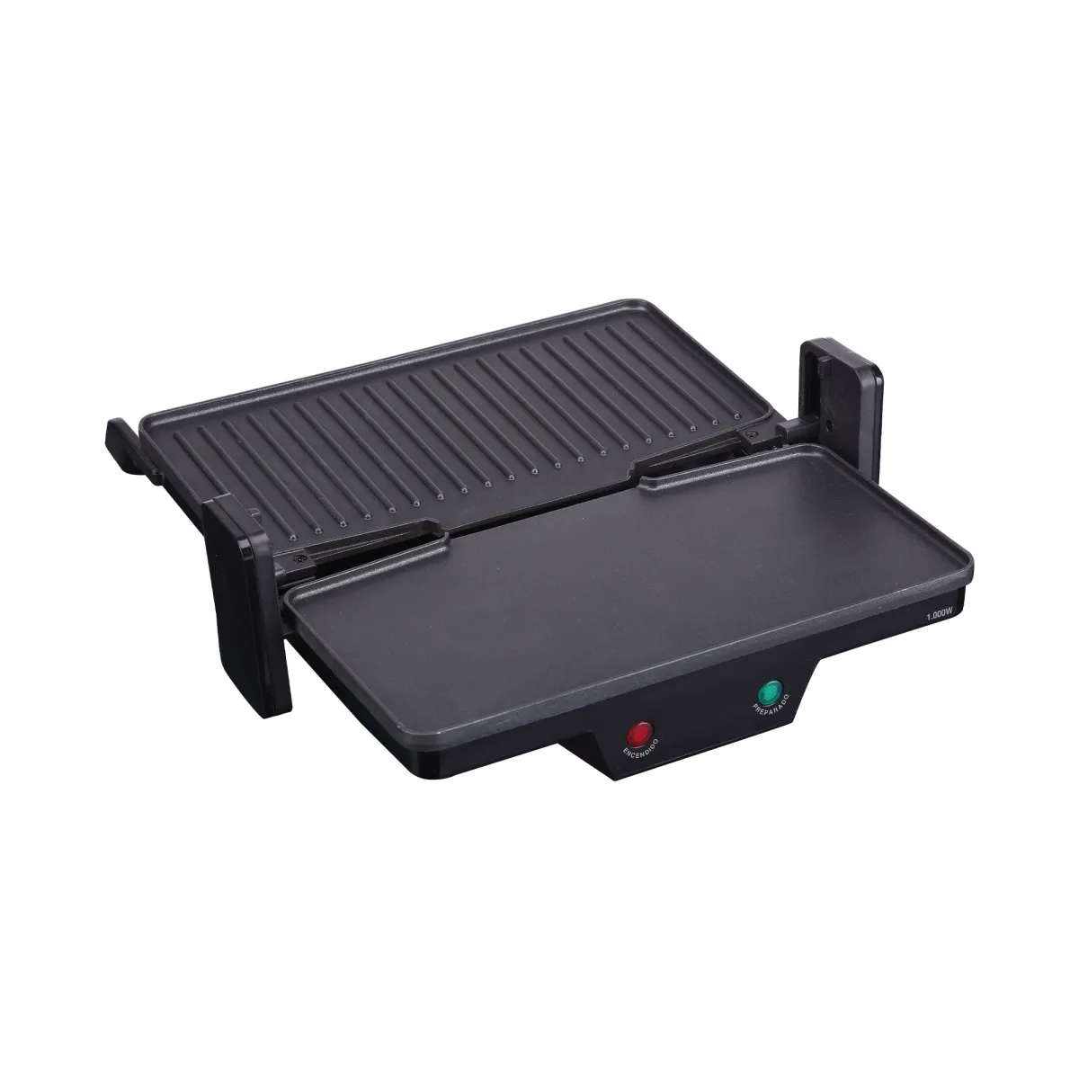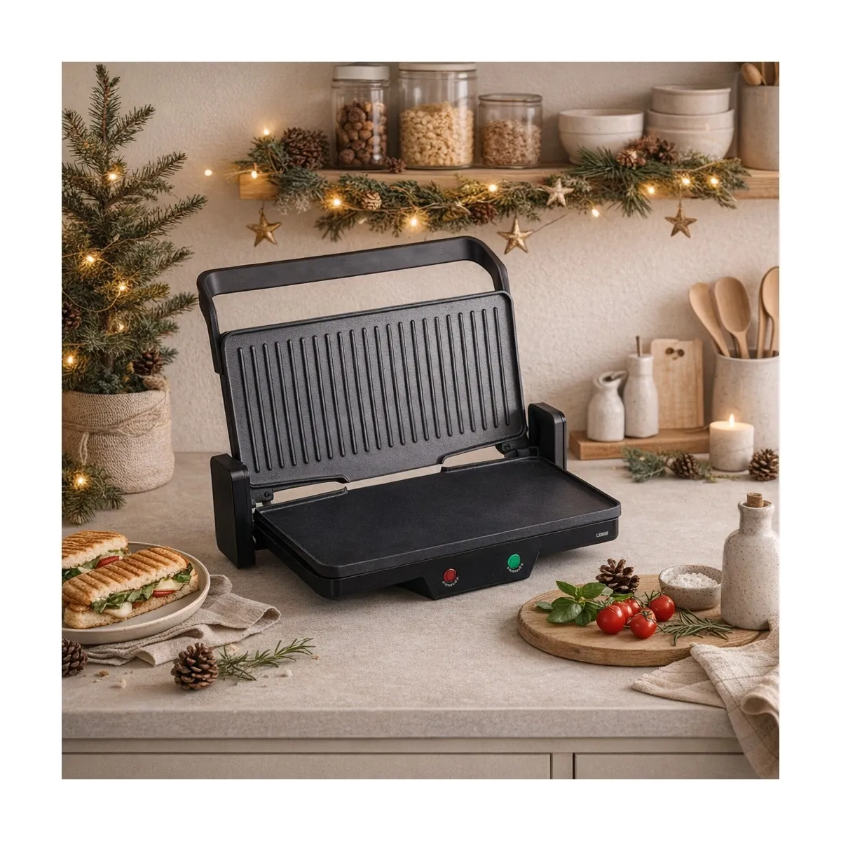 El grill 3 en 1 cuenta con una superficie plana y otra rayada para facilitar el dorado de todo tipo de carnes y pescados, se puede usar como plancha de asar, grill o sandwichera