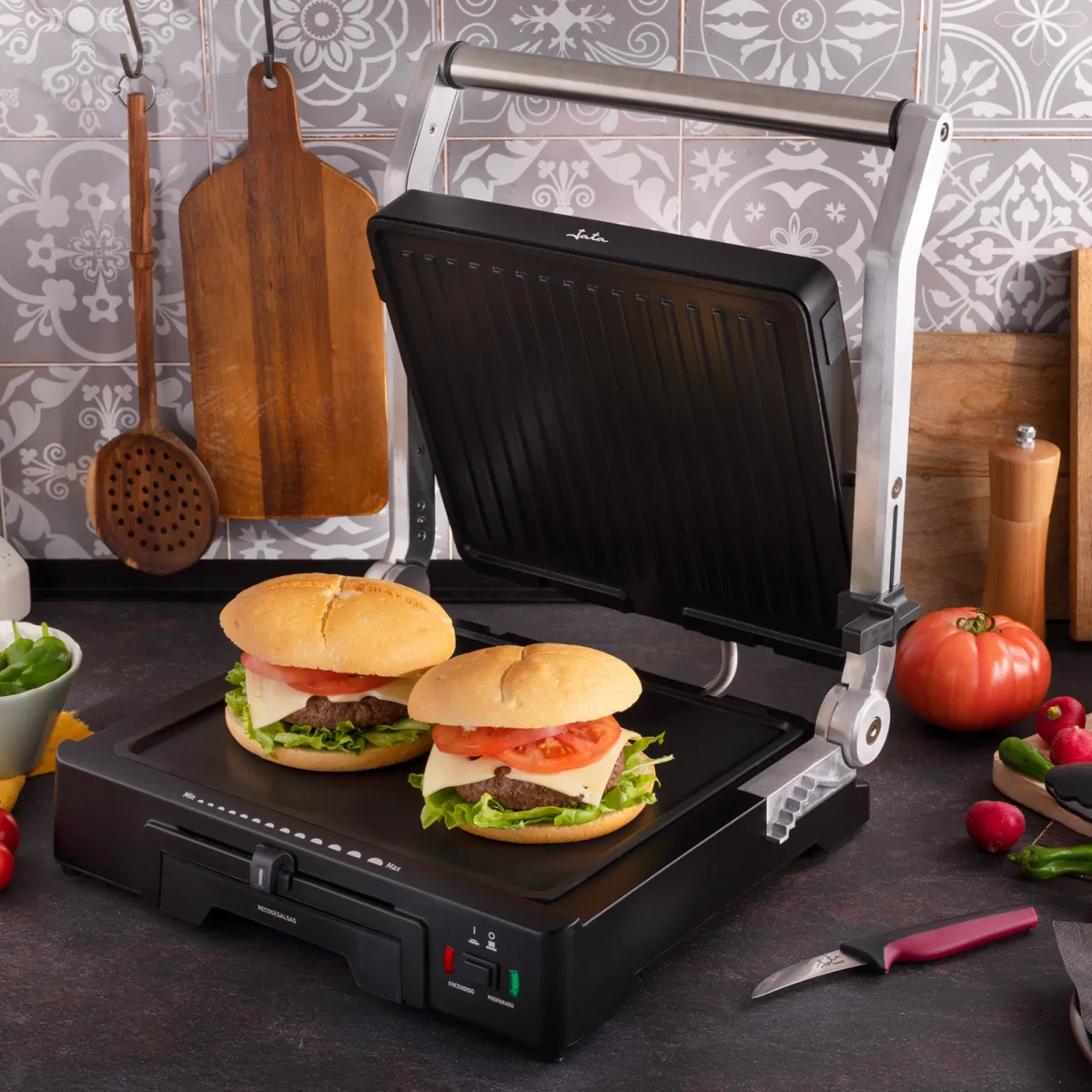 El grill 3 en 1 cuenta con una superficie plana y otra rayada para facilitar el dorado de todo tipo de carnes y pescados, se puede usar como plancha de asar, grill o sandwichera Recubrimiento antiadherente Apertura a 180º Presión de asado uniforme Bandeja recoge salsasDESCARGA AQUÍTU LIBRO DE 21 RECETAS RÁPIDAS
