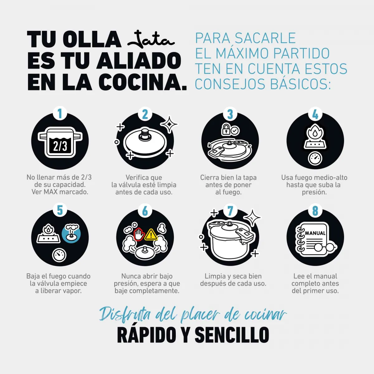 La olla de Jata a presión estanca esta disponible en 3 tamaños diferentes, para que puedas seleccionar la que mejor se adapta a tus necesidades.