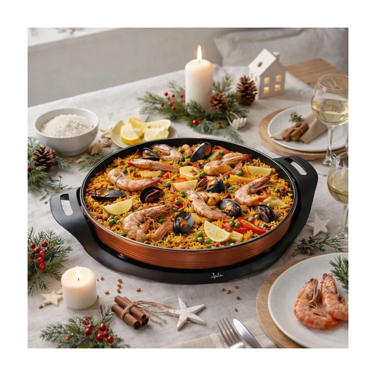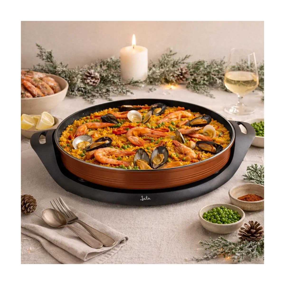 IDEAL PARA TUS CENAS DE NAVIDAD 🌟🎅🏻🎄 La sartén paellera eléctrica PE550 cuenta con un diámetro de 55, especial para grandes paellas o guisados. Ofrece temperatura uniforme en toda la superficie (1900 W). Recubrimiento antiadherente Fabricada en España Diámetro 55 cm Temperatura uniforme en toda la superficie Recubrimiento antiadherente libre de...