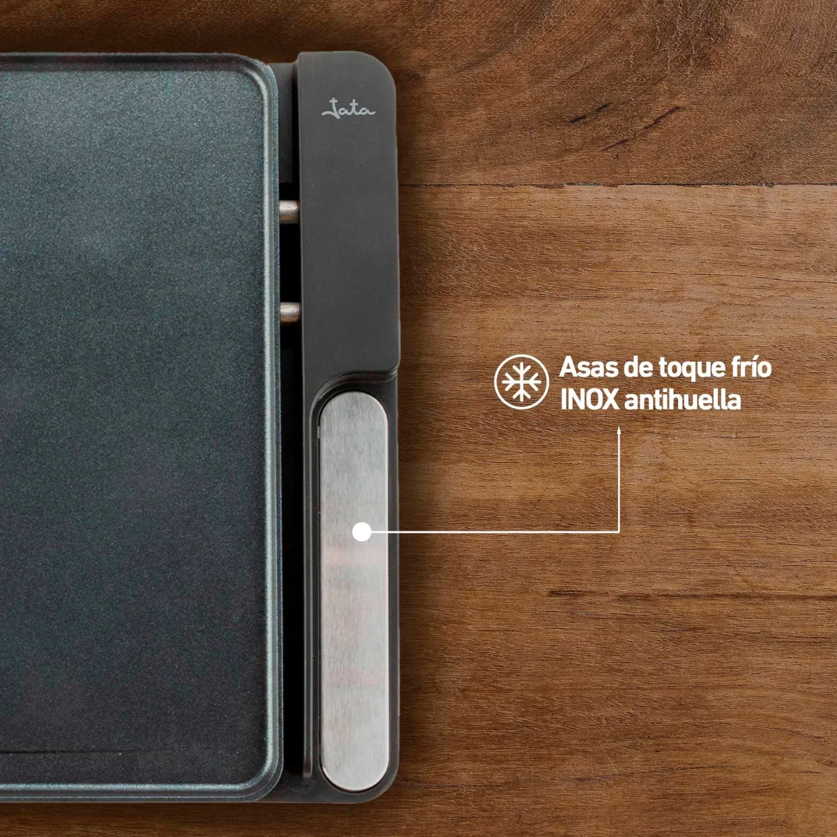 La plancha de asar de Jata cuenta con una resistencia en forma de M que nos permite cocinar por igual en toda la superficie y de forma rápida gracias a sus 2500 W. Recubrimiento antiadherente Pfluon Granite libre de PFOA Resistencia en “M” Medidas 460 x 280 mm Potencia 2.500 W