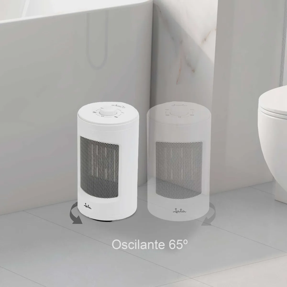 Termoventilador horizontal con selector rotativo de tres posiciones y dos potencias de calor. Selector rotativo de 3 posiciones 2 potencias de calor Termostato regulable de temperatura ambiente Protección contra sobrecalentamiento