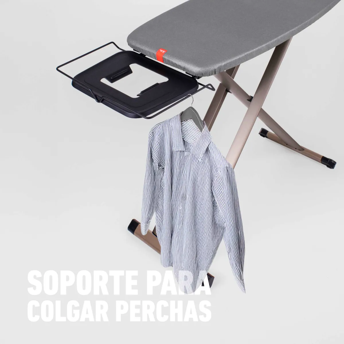 Estructura termolacada con alta resistencia a la oxidación y altura ajustable multiposiciones. Superficie de planchado 116 x 35 cm Sistema de cierre de seguridad Diseño de patas en “Y”, alta estabilidad Patas antideslizantes