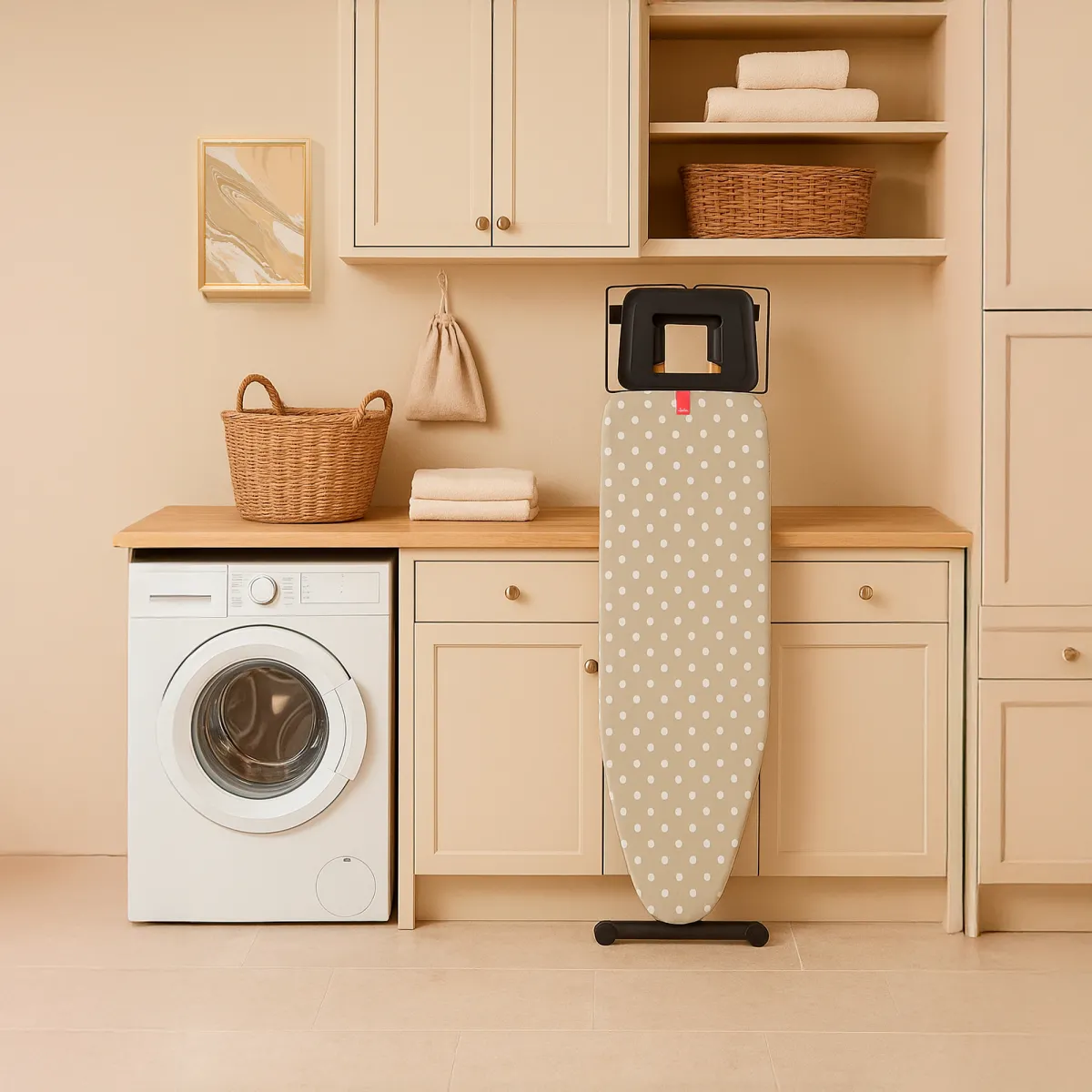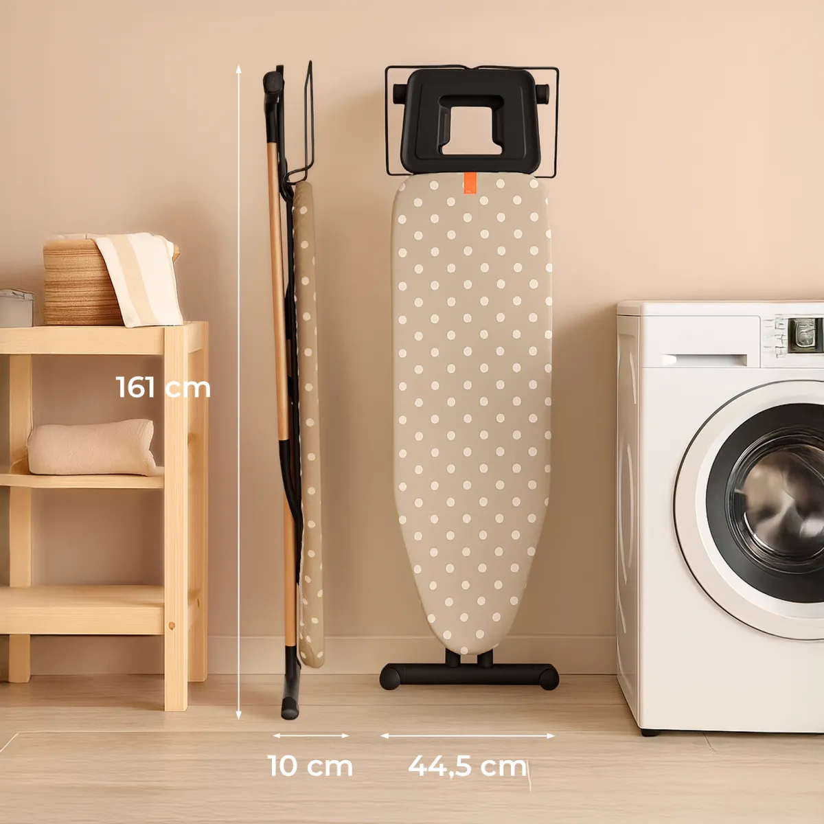 Tabla de planchar Premier con funda 100% algodón y patas antideslizantes. Ajustable para un planchado más cómodo Superficie de planchado 110 x 32 cm Estructura con pintura epoxi Alta resistencia a la oxidación Altura ajustable 3 posiciones, hasta 92 cm