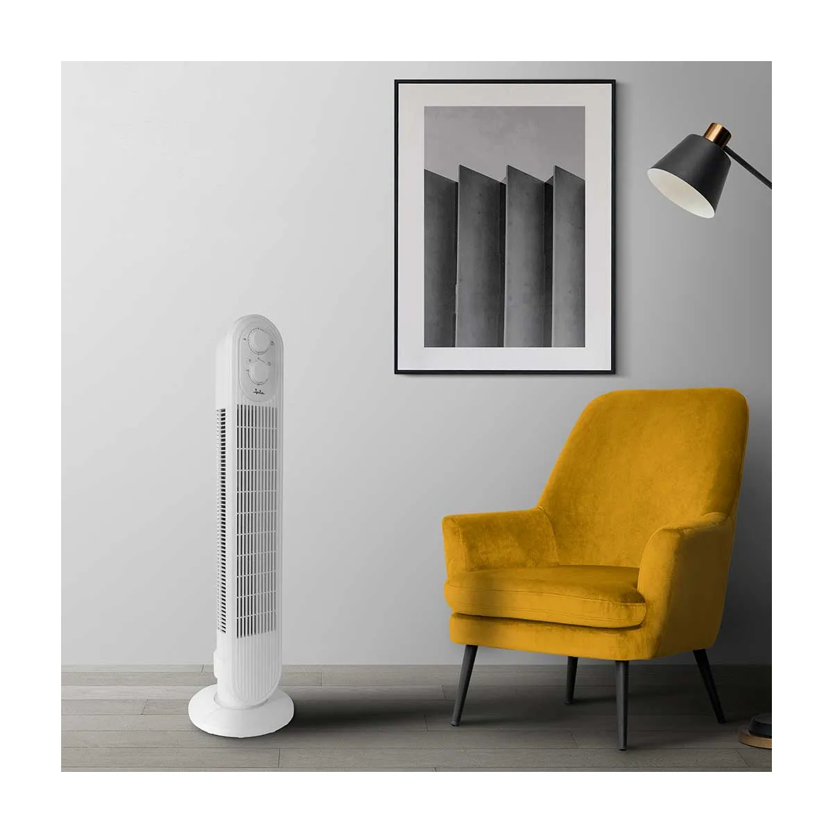 Con Jata disfrutarás de espacios ventilados y frescos 3 velocidades Oscilación automática Cabezal inclinable Rejilla de metal protectora